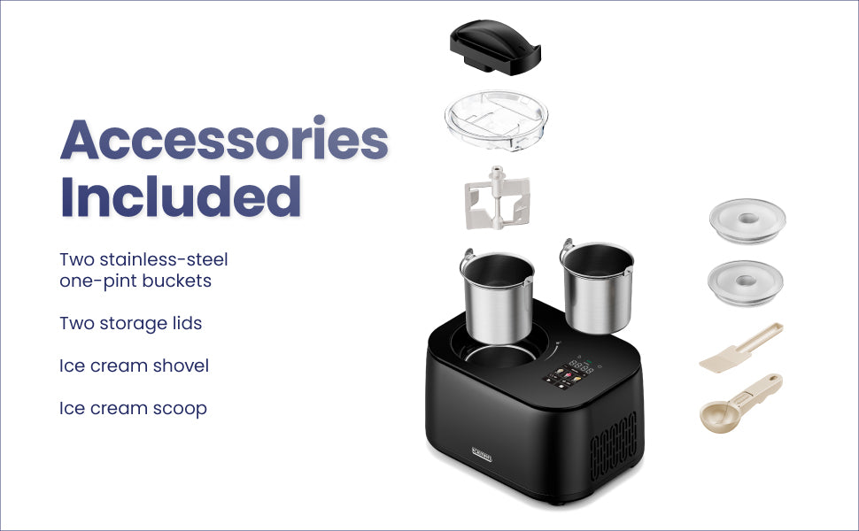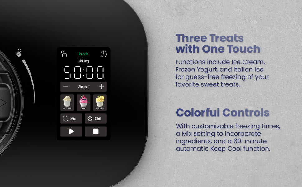 The Ice Cream Maker lets you easily create a variety of frozen treats at home, from ice cream to sorbet. With preset controls and an automatic cooling feature, it simplifies the process and delivers creamy results in about an hour. Its clear lid allows you to monitor progress, while two stainless steel inserts let you prepare different flavors. Plus, the included recipe book offers ideas for classic and healthy options. Perfect for experimenting with new recipes or enjoying family favorites.