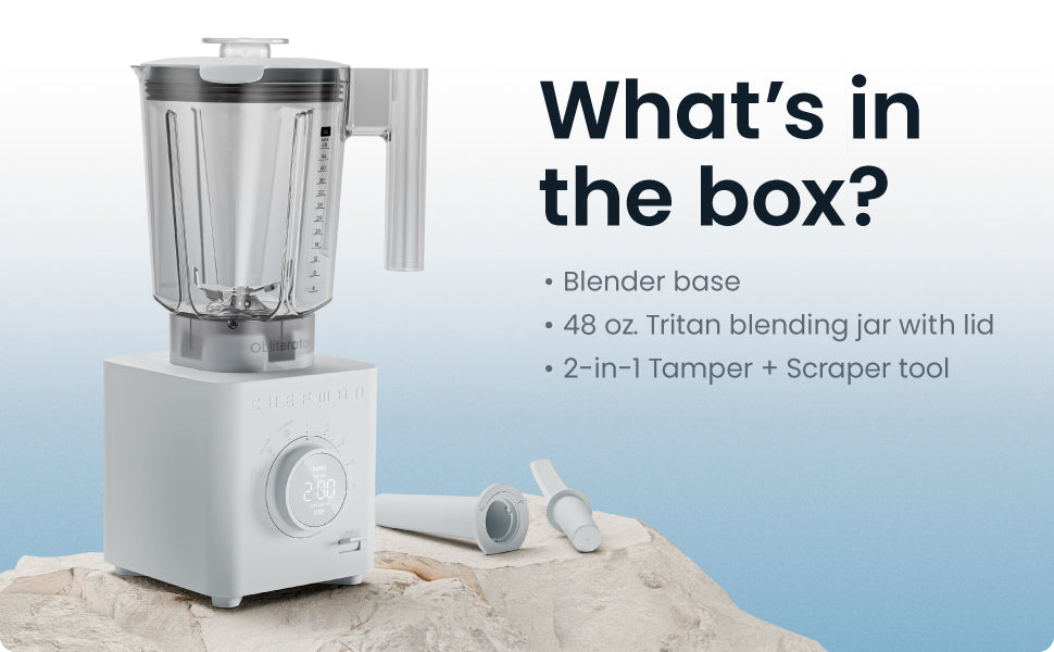 Effortlessly blend tough ingredients with the Obliterator 48 oz Power Blender. Its powerful 1380W motor and advanced airflow system make crushing ice a breeze while keeping the blender cool and quiet. The Auto Blend function optimizes blending for the best results, and the easy-to-use dial controls offer six speeds and three preset functions. Comes with a tamper/scraper tool for convenience.