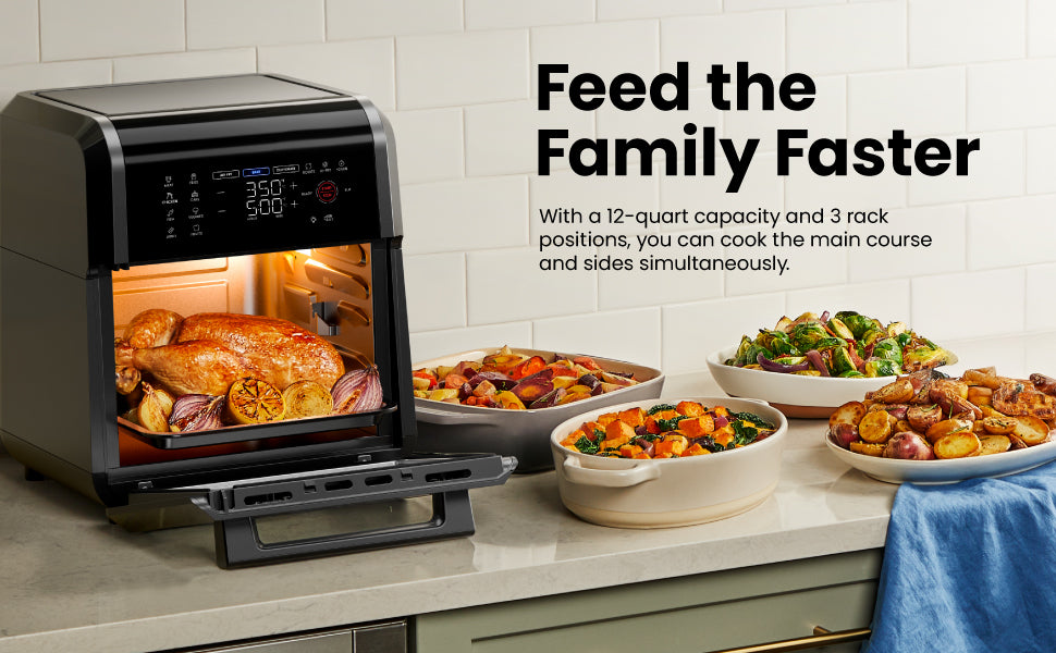 Horno freidora de aire multifuncional 6 en 1 - 12 cuartos
