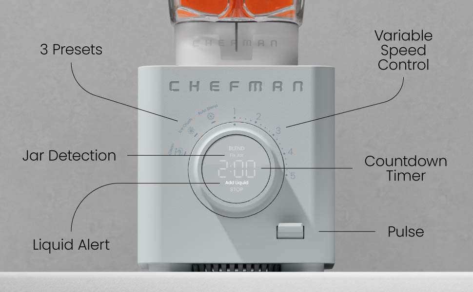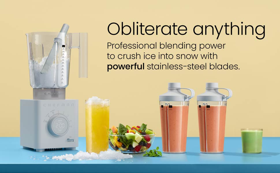 Effortlessly blend tough ingredients with the Obliterator 48 oz Power Blender. Its powerful 1380W motor and advanced airflow system make crushing ice a breeze while keeping the blender cool and quiet. The Auto Blend function optimizes blending for the best results, and the easy-to-use dial controls offer six speeds and three preset functions. Comes with a 20 oz. travel jar and tamper/scraper tool for convenience.