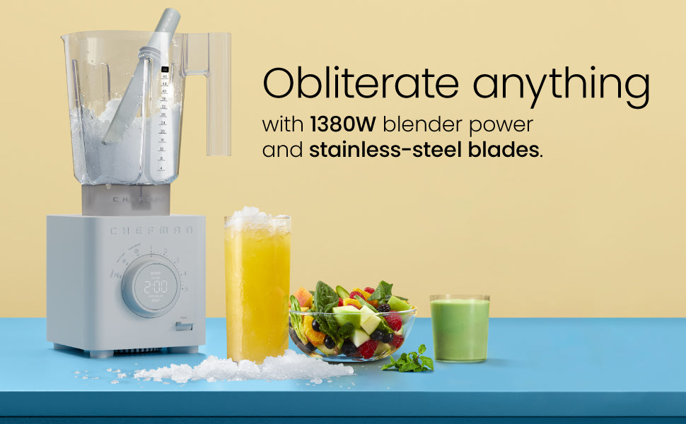 Licúa fácilmente ingredientes difíciles con la licuadora Obliterator Power de 1,2 litros. Su potente motor de 1380 W y su avanzado sistema de flujo de aire facilitan la trituración de hielo, manteniendo la licuadora fresca y silenciosa. La función Auto Blend optimiza el licuado para obtener los mejores resultados, y los controles giratorios fáciles de usar ofrecen seis velocidades y tres funciones predefinidas. Incluye un prensador/rascador para mayor comodidad.
