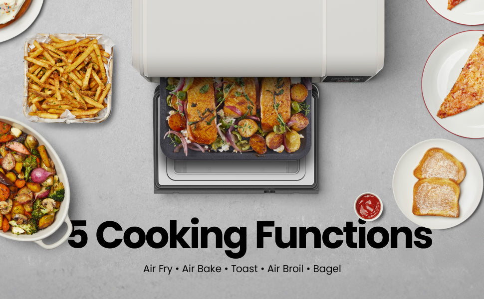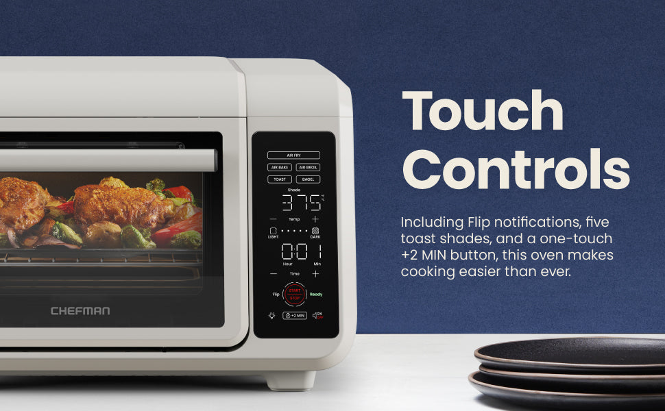 El horno + freidora Chefman EasyAir cocina más rápido que tu horno, con cinco funciones y una capacidad de 15 cuartos. Incluye un panel de control digital, notificaciones desplegables y accesorios aptos para lavavajillas para facilitar su uso y limpieza.