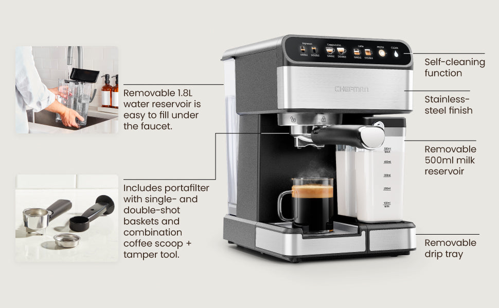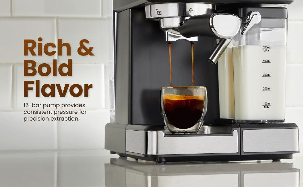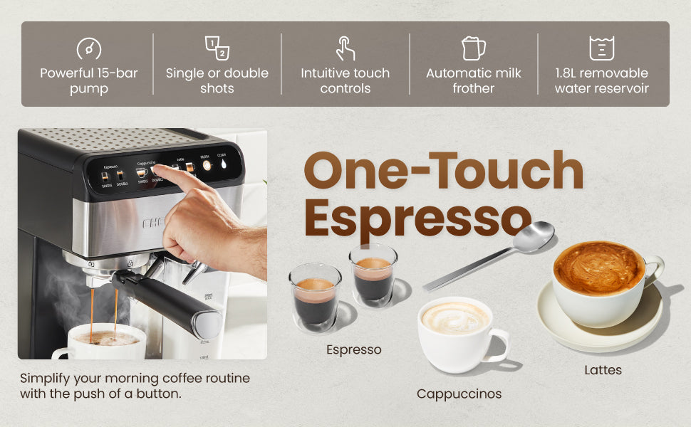 Presentamos la Cafetera Espresso CaféMaster Pro, la solución perfecta para disfrutar del delicioso sabor de las bebidas de la cafetería en la comodidad de tu hogar. Con una bomba de 15 bares y espumador integrado, esta cafetera 6 en 1 te permite convertirte en tu propio barista, creando espressos, capuchinos, lattes y mucho más de alta calidad con un solo toque. Integra tu cafetería en tu rutina diaria con la CaféMaster Pro.